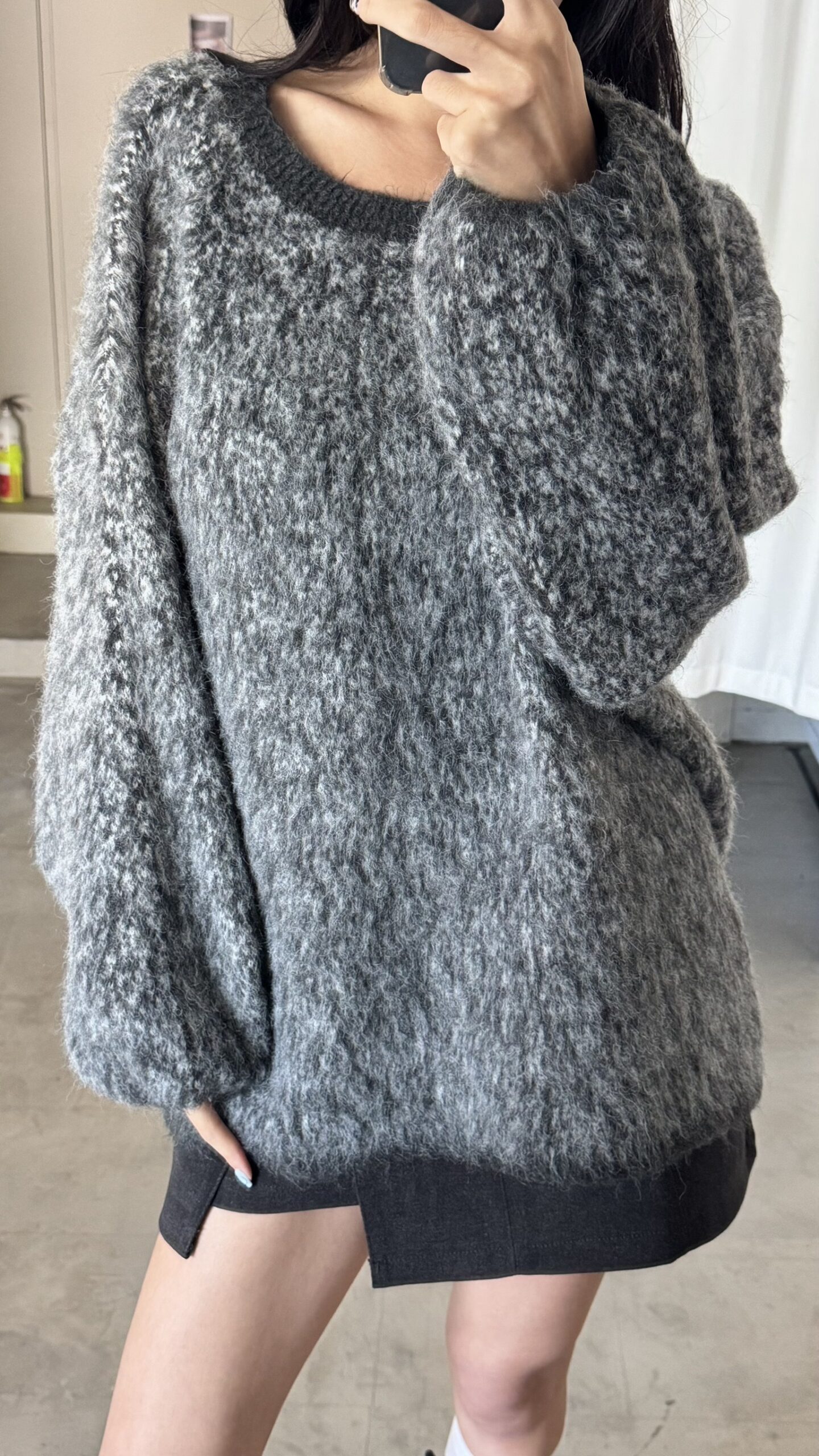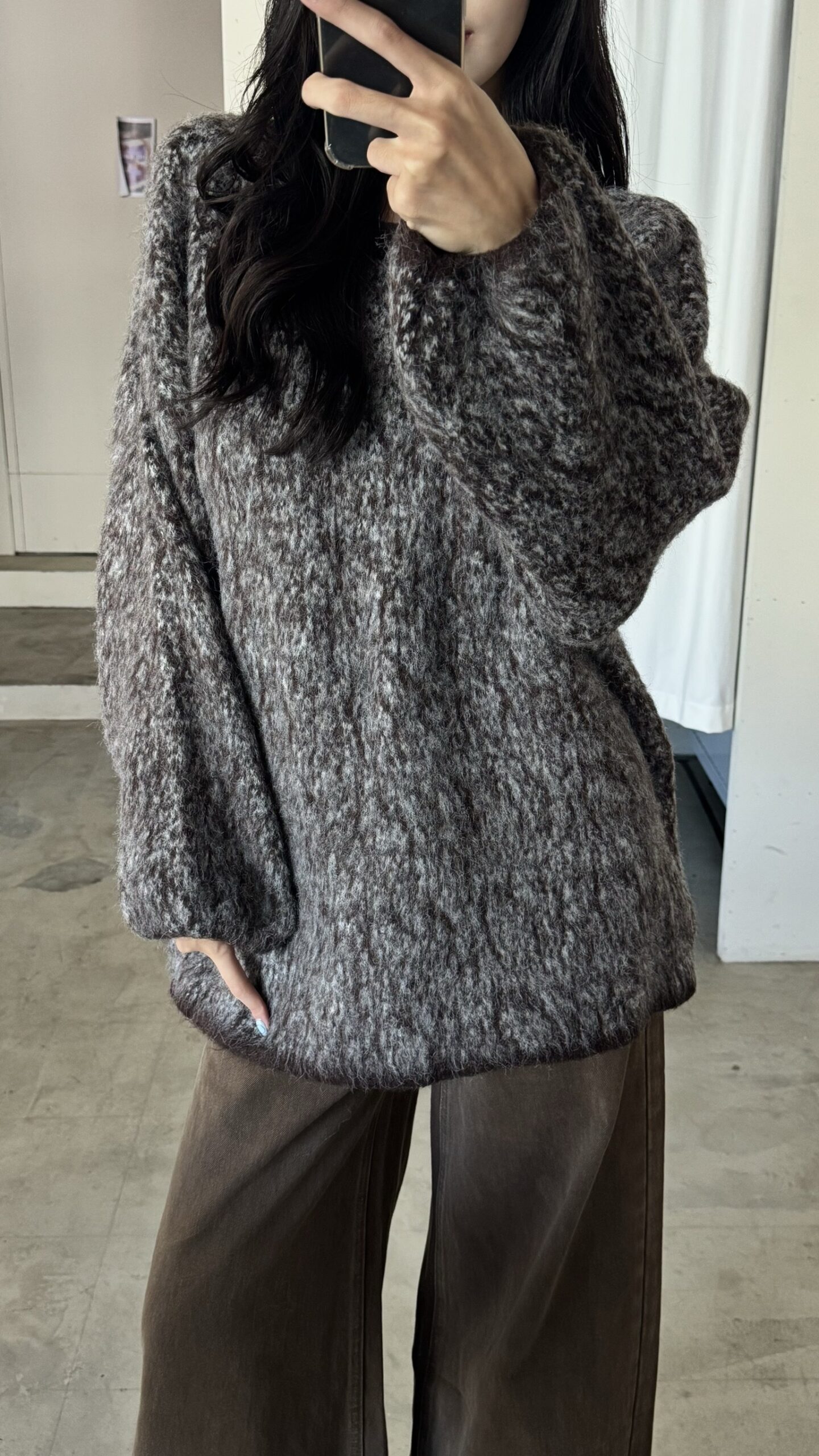 CD1 50916拼色系斜肩寬版毛衣
