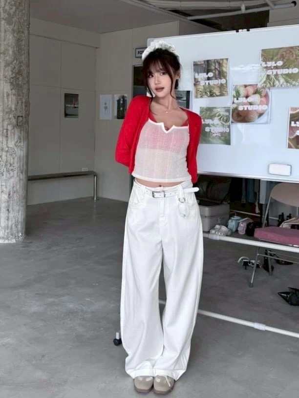 CD2高腰髮圈水洗牛仔褲(附皮帶)